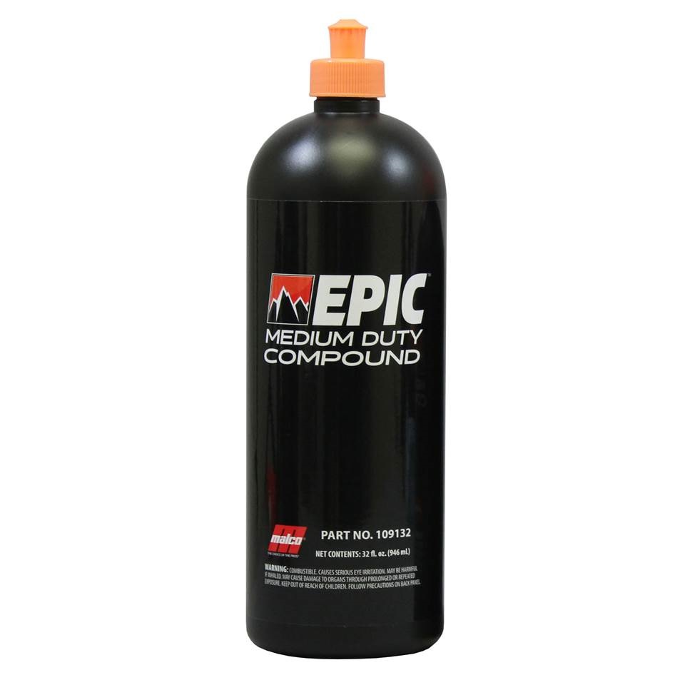 EPIC Medium Duty Compound is a buffing compound that removes up to P2500-grit sand scratches and polishes to a beautiful gloss finish in one easy step using an orbital polisher. EPIC Medium Duty Compound is designed for medium correction, such as car wash swirls, snow brush scratches and oxidation. Containing no waxes, fillers or silicones, this buffing compound is 100% body shop safe. Plus, the water-based, dust-free formula significantly reduces clean-up time. Produce that special finish in no time, with the full EPIC Paint Correction System.